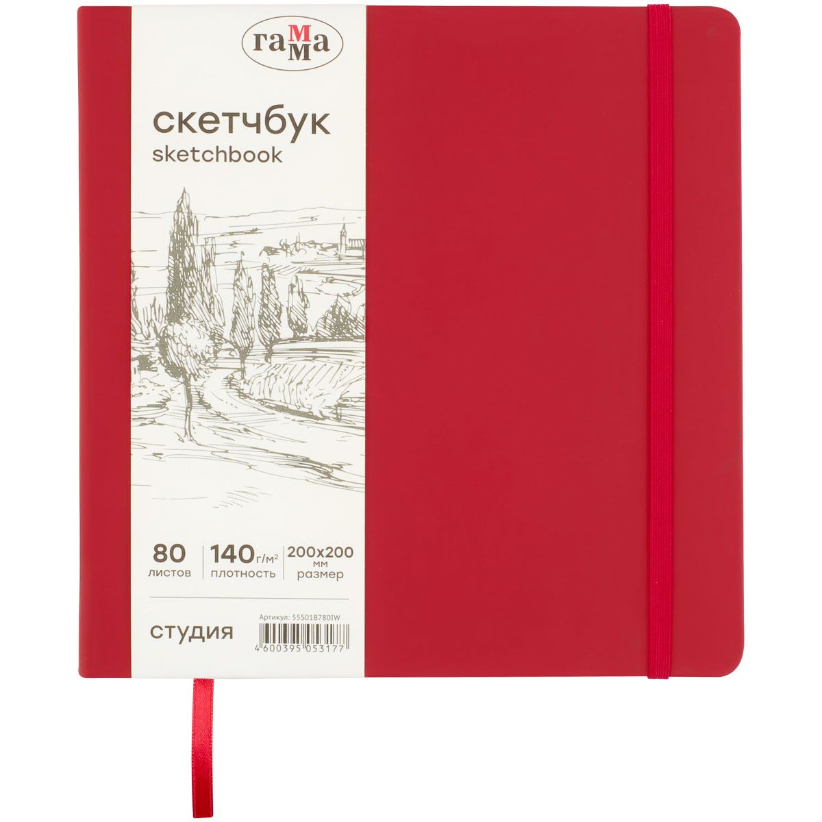 Скетчбук 80л., 200*200 Гамма "Студия", винный, твердая обложка, на резинке, слоновая кость, 140г/м2