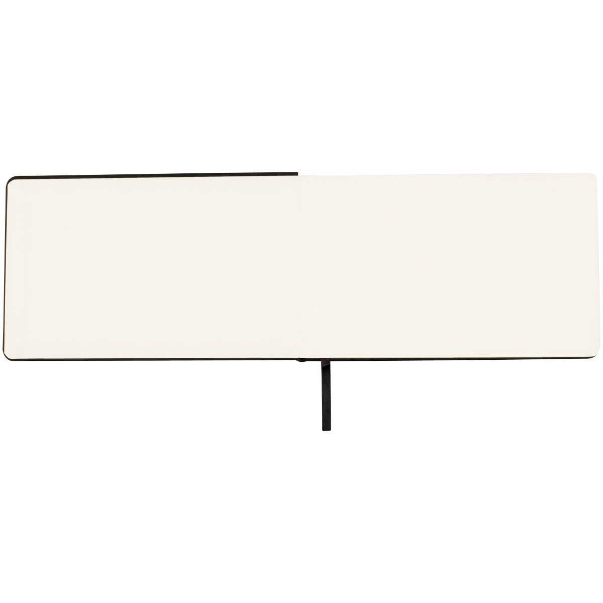Лаконичный, компактный размер и жёсткая обложка с эффектом soft-touch обеспечивает удобство зарисовок на прогулке или в путешествии. Цвет обложки – чёрный. Закладка-ляссе помогает быстро открыть скетчбук на нужной странице, а эластичная резинка предотвращает листы от замятия и случайного открытия.