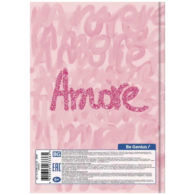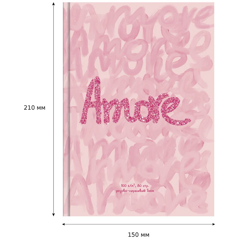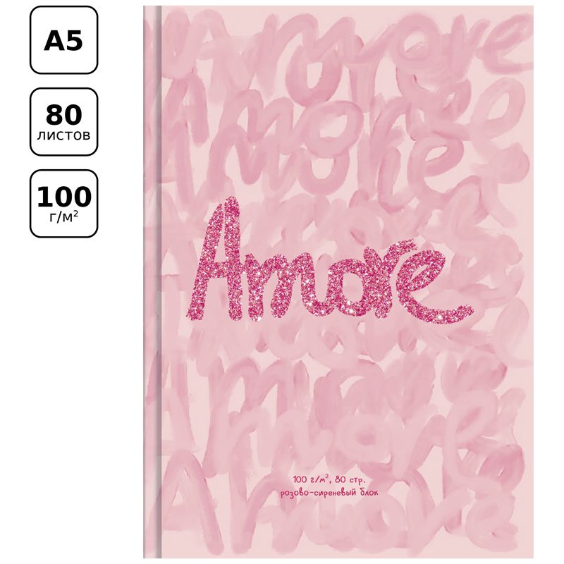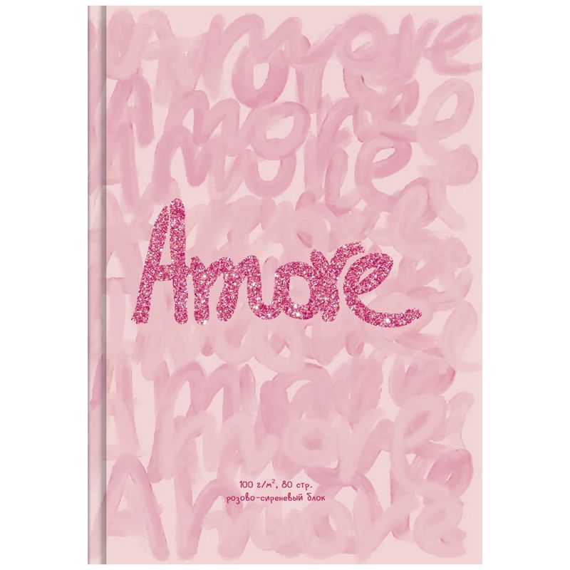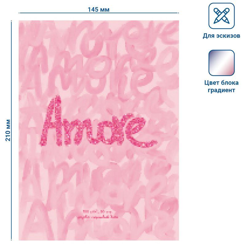 Скетчбук 80л., А5 7БЦ BG "Amore", матовая ламинация, блестки, белый блок с градиентом, 100г/м2