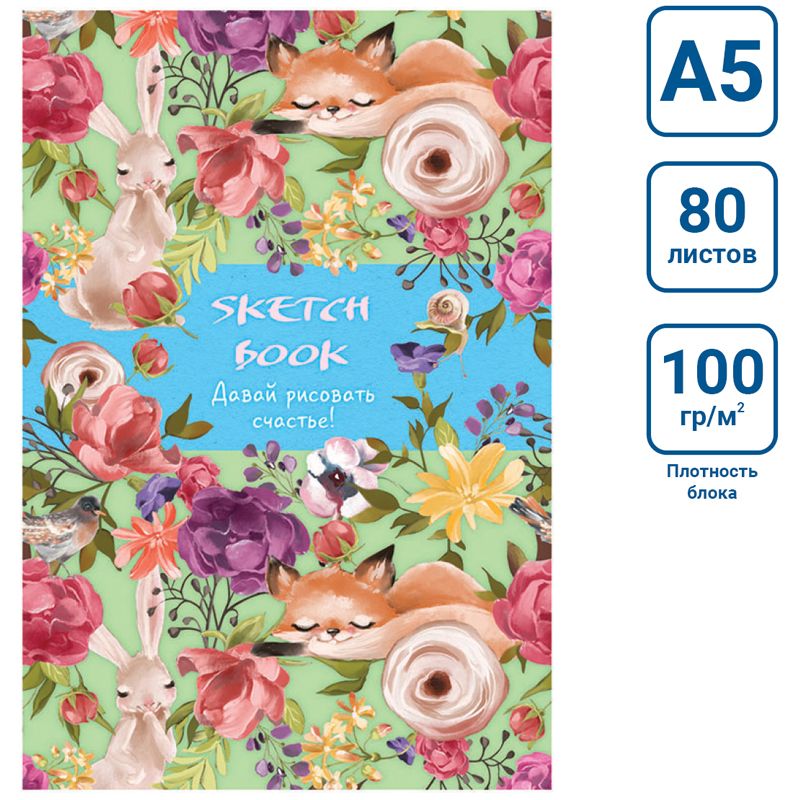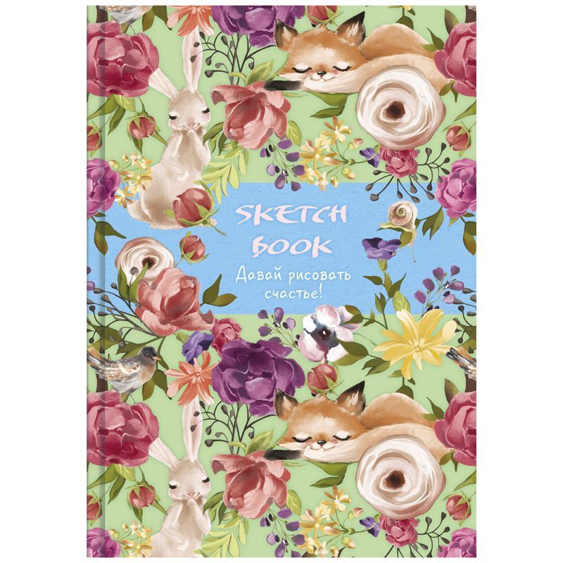 Скетчбук 80л., А5 7БЦ BG "Рисую счастье", матовая ламинация, блестки, белый блок с градиентом, 100г/м2