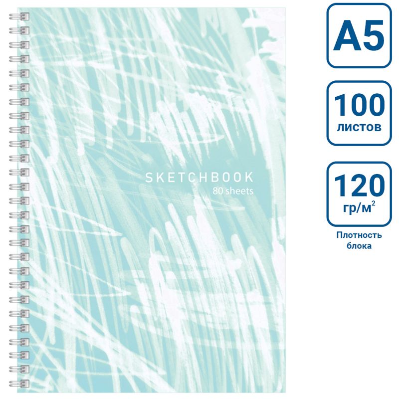 Скетчбук 80л., А5 на гребне BG "Штрихи", матовая ламинация, 120г/м2