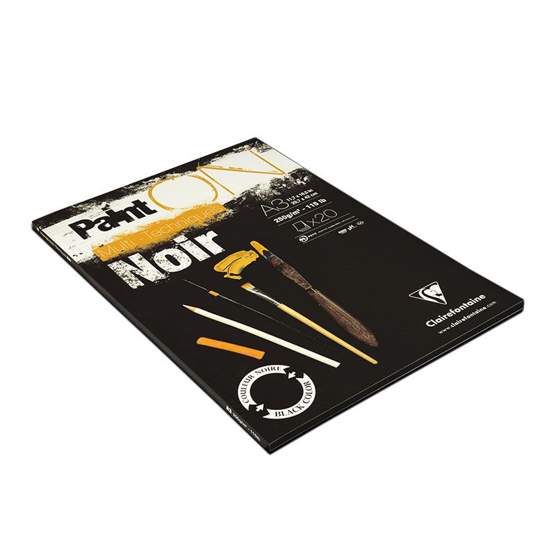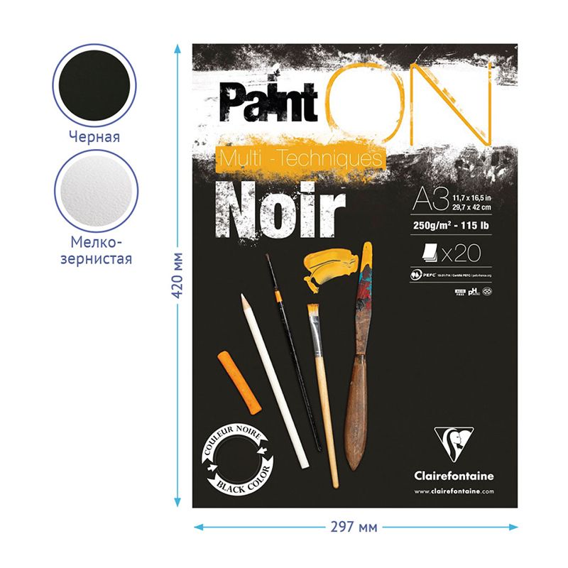 Скетчбук - альбом для смешанных техник 20л., А3 Clairefontaine "Paint ON Noir", на склейке, черный, 250г/м2