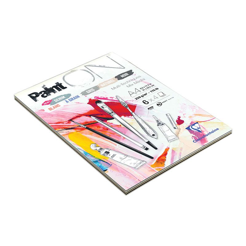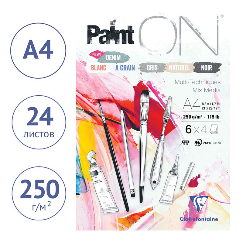 Скетчбук - альбом для смешанных техник 24л., А4 Clairefontaine "Paint ON", на склейке, 6 цветов, 250г/м2