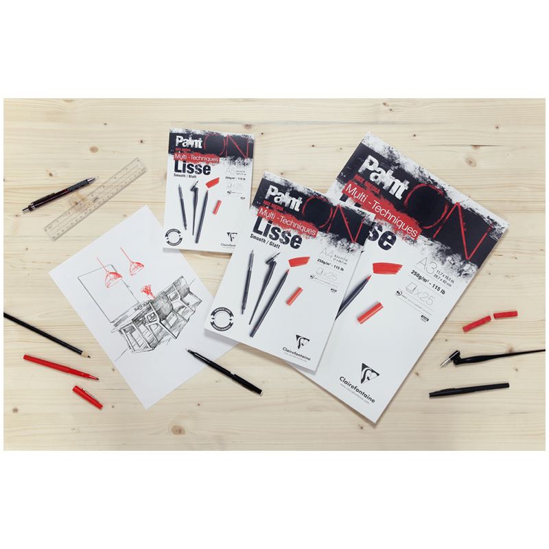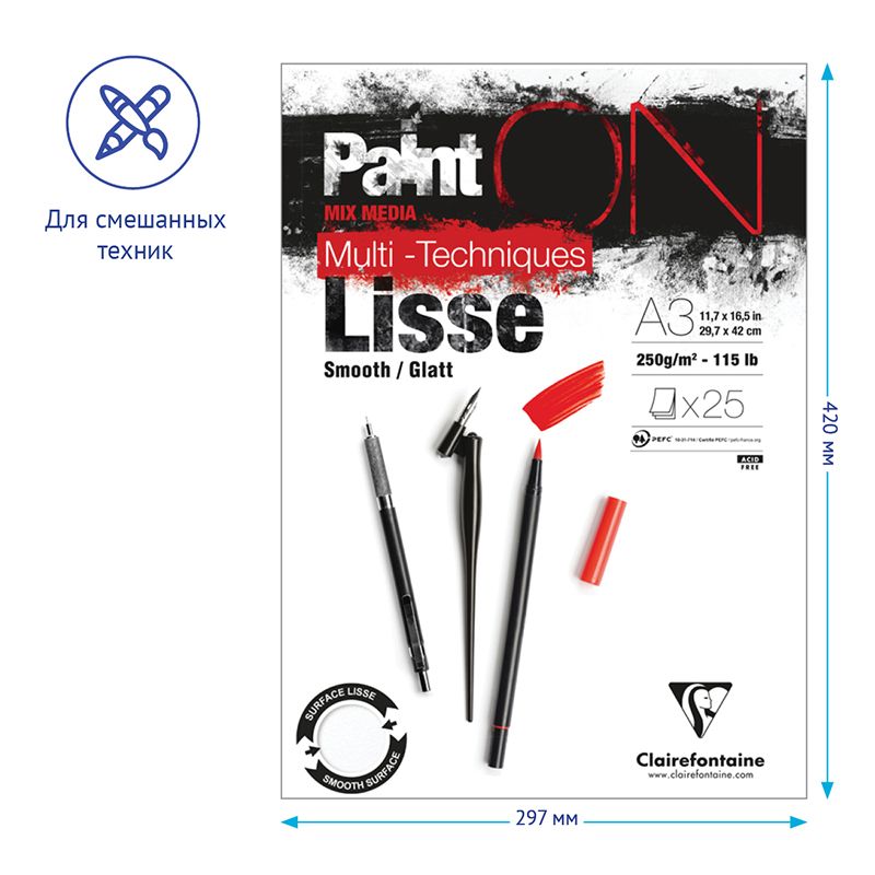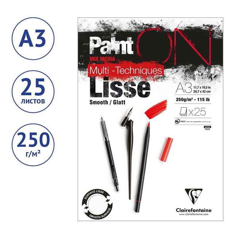 Скетчбук - альбом для смешанных техник 25л., А3, на склейке Clairefontaine "Paint'ON Smooth", белый, 250г/м2