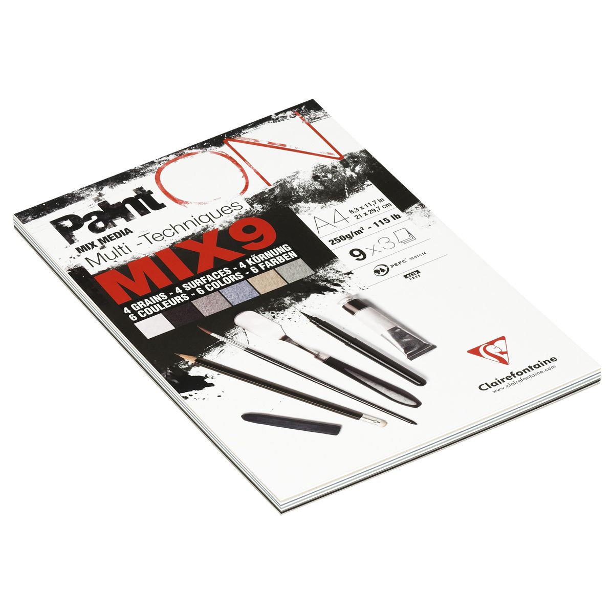 Скетчбук - альбом для смешанных техник 27л., А4 Clairefontaine "Paint ON", на склейке, 250г/м2, 5цветов, 4 типа поверхности