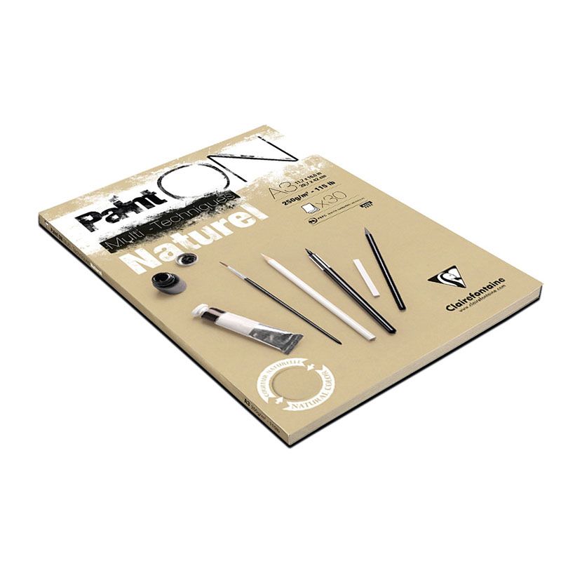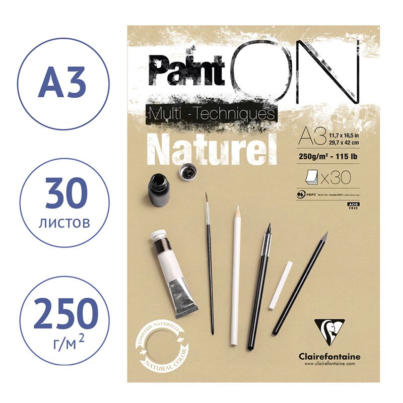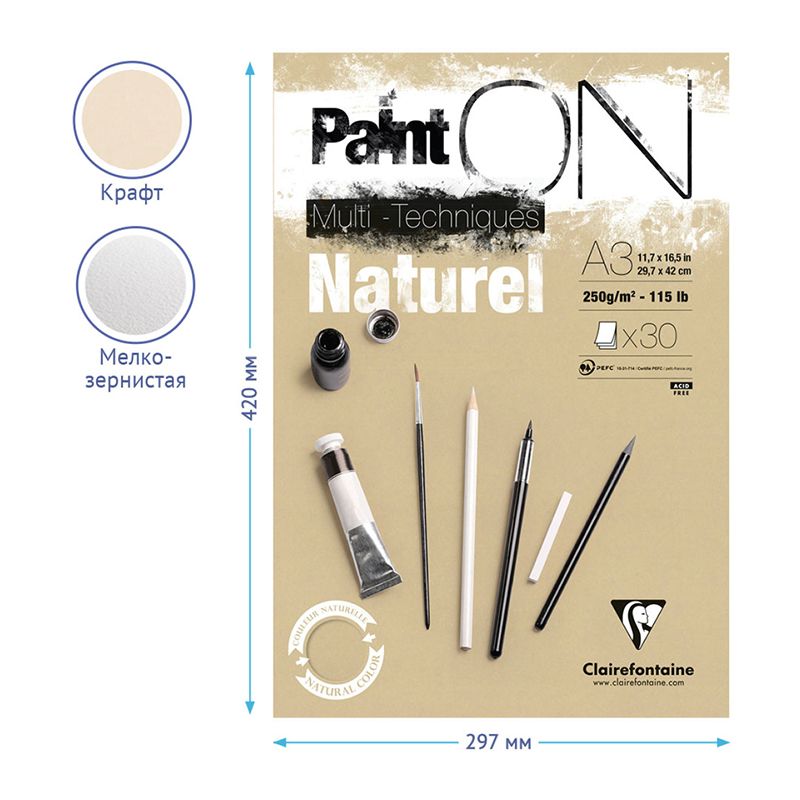Скетчбук - альбом для смешанных техник 30л., А3, на склейке Clairefontaine "Paint'ON Naturel", крафт, 250г/м2
