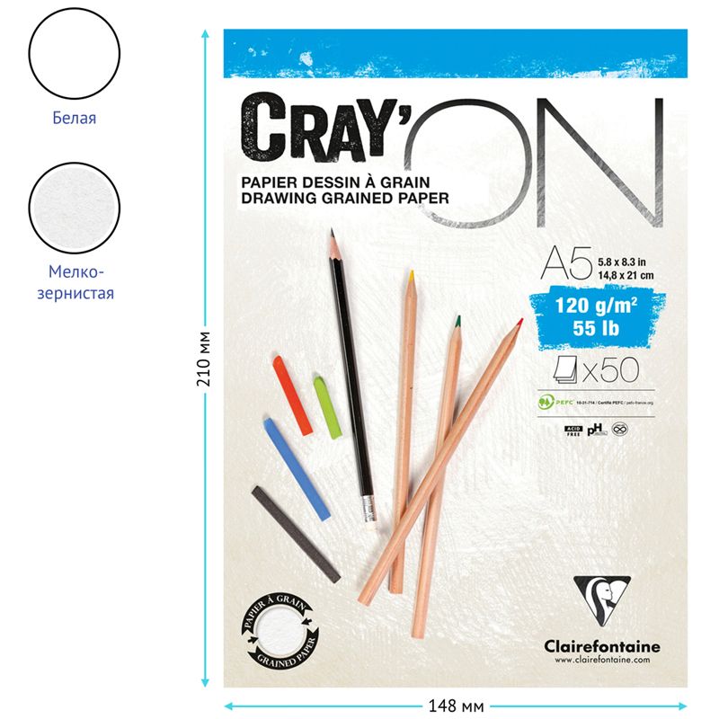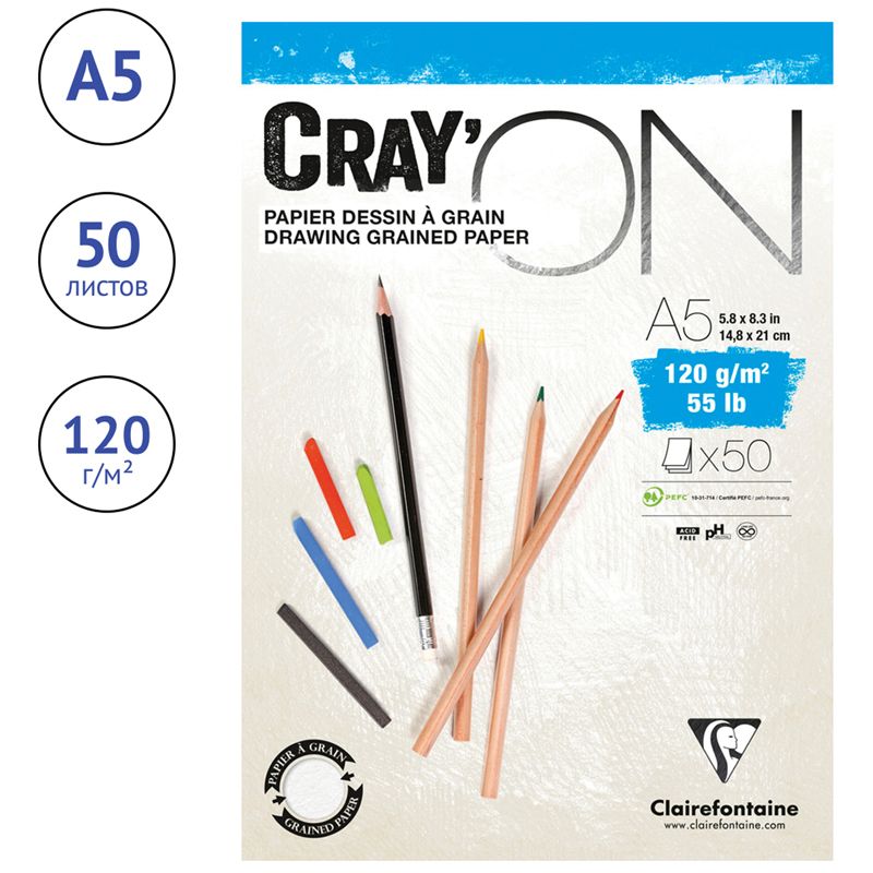Скетчбук - блокнот 50л., А5 Clairefontaine "Cray ON", на склейке, мелкозерн., 120г/м2