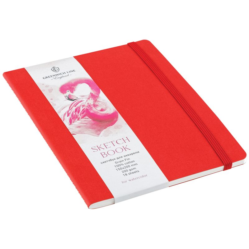 Скетчбук для акварели 18л., 150*200 Greenwich Line, красный, 100% хлопок, на резинке, 200г/м2
