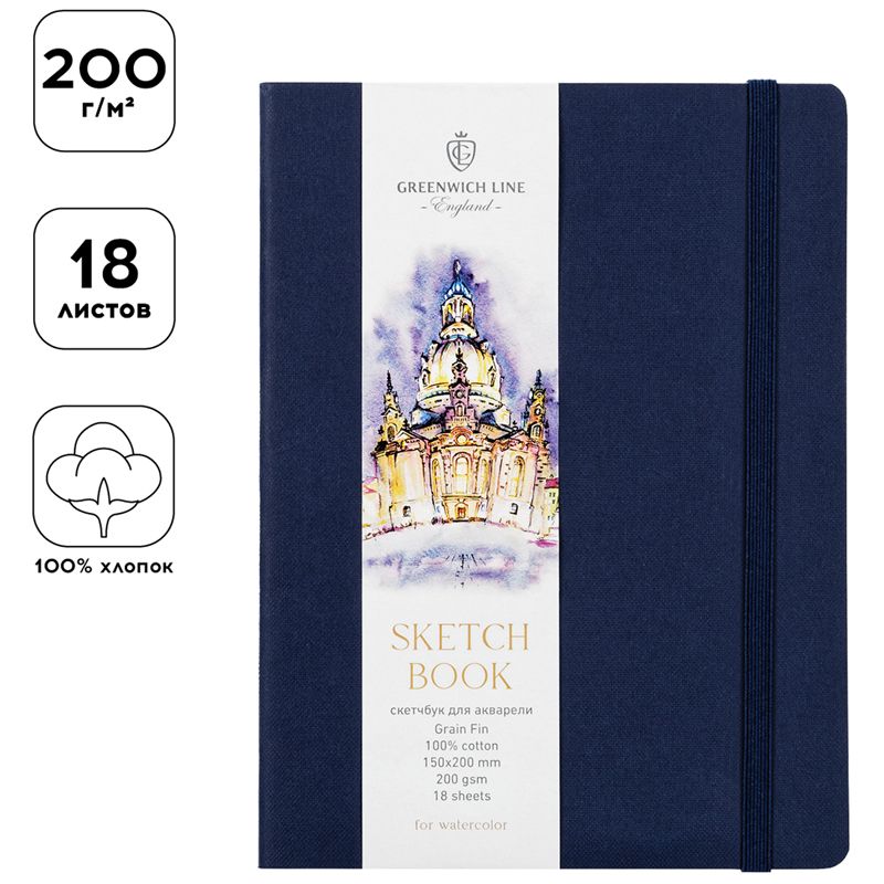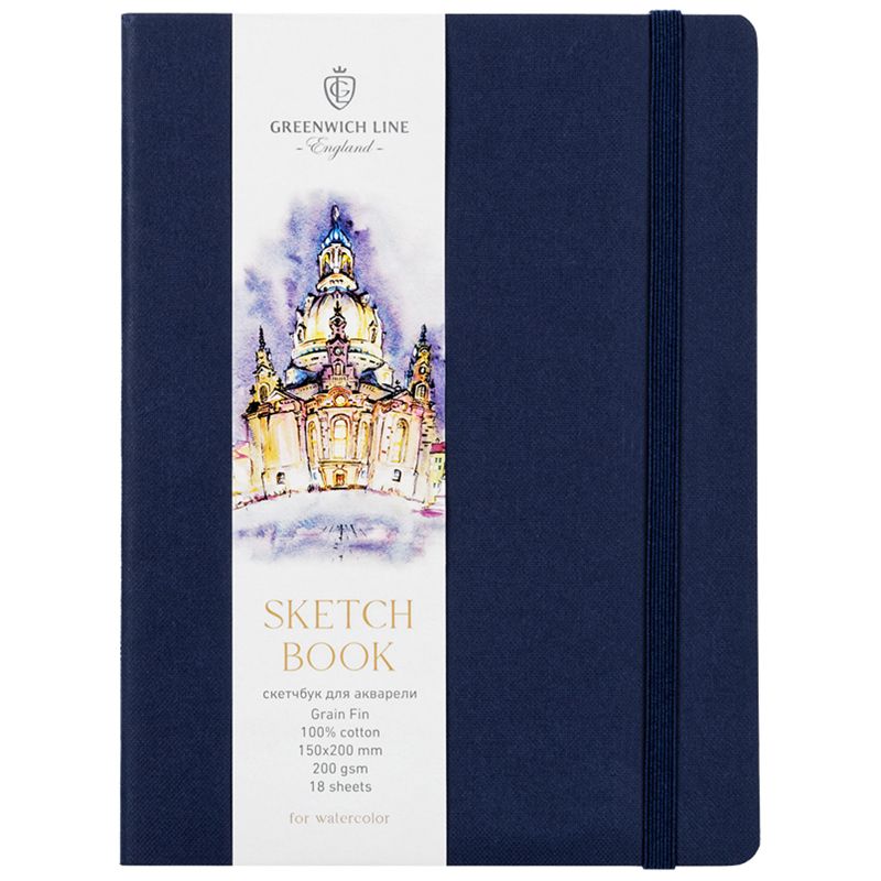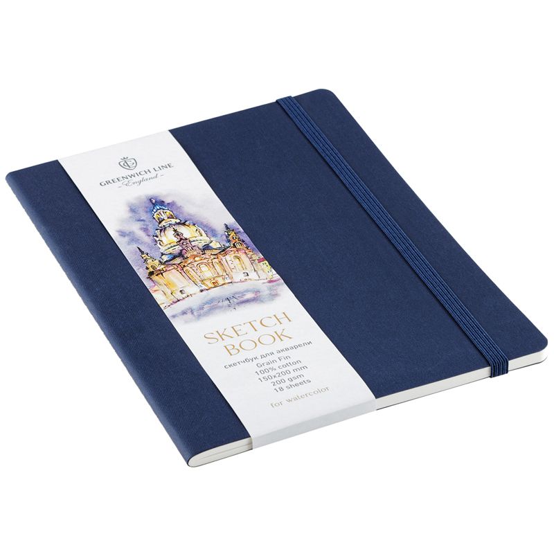 Скетчбук для акварели 18л., 150*200 Greenwich Line, темно-синий, 100% хлопок, на резинке, 200г/м2