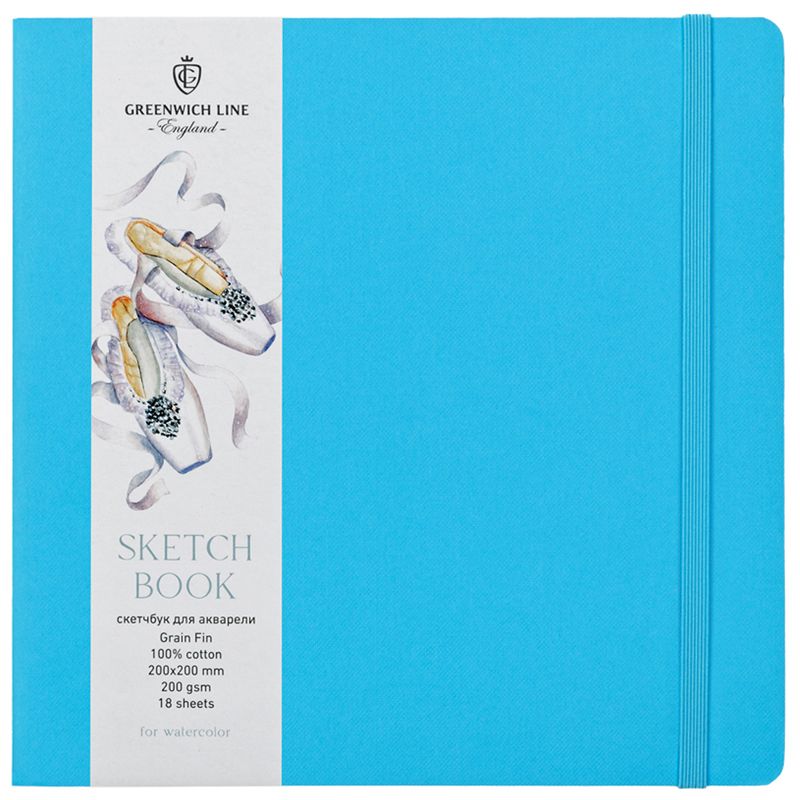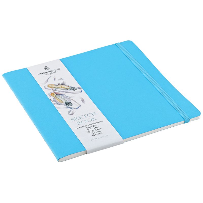 Скетчбук для акварели 18л., 200*200 Greenwich Line, лазурный, 100% хлопок, на резинке, 200г/м2