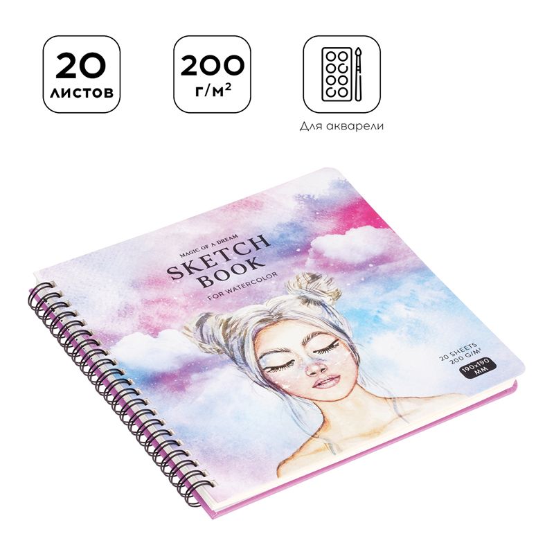 Скетчбук для акварели 20л., 190*190 Greenwich Line "Dreams in clouds", на гребне, 200г/м2