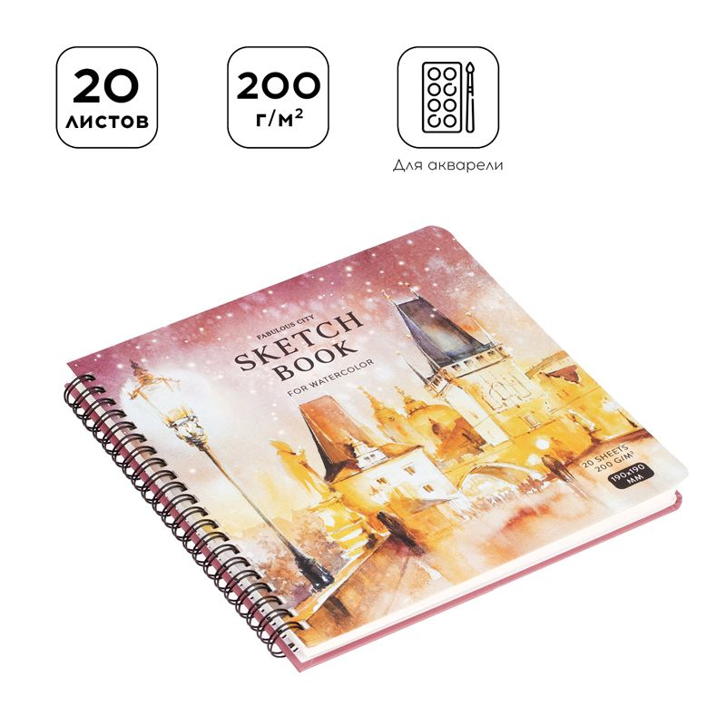 Скетчбук для акварели 20л., 190*190 Greenwich Line "Winter town", на гребне, 200г/м2