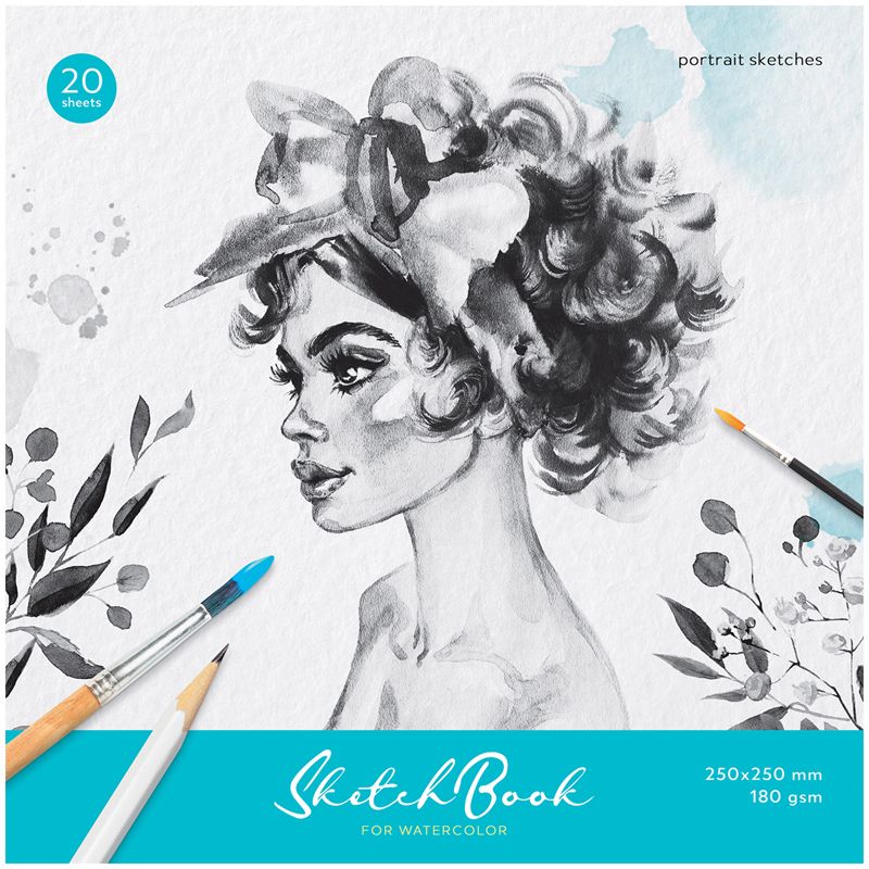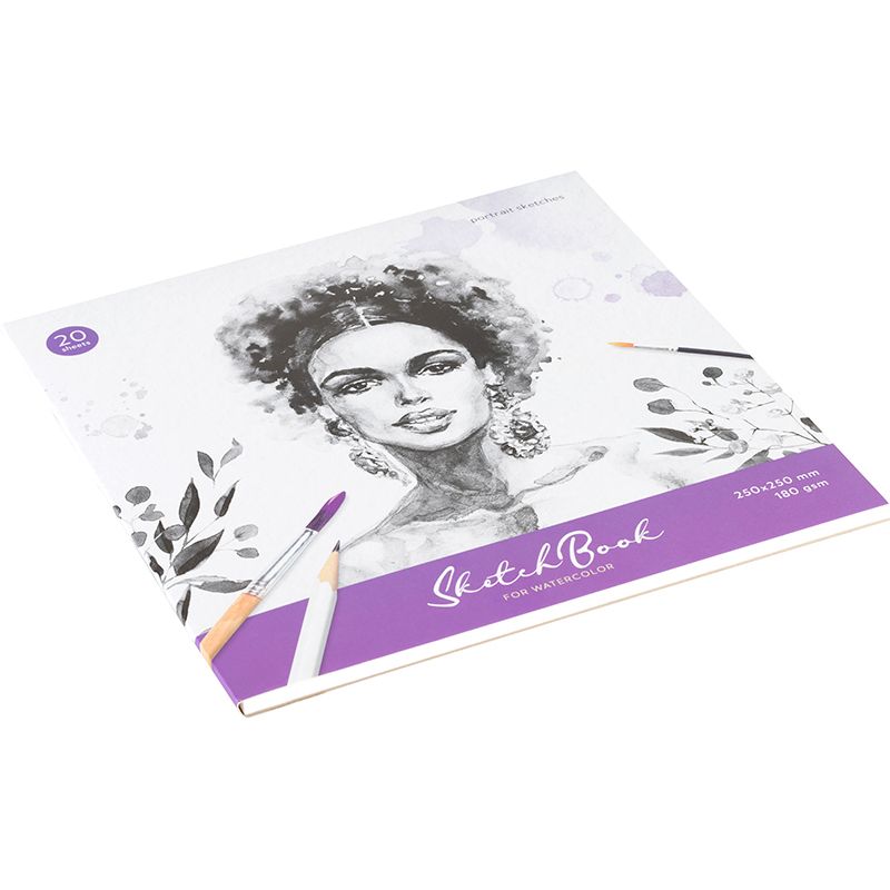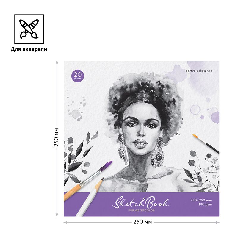 Скетчбук для акварели 20л., 250*250 ArtSpace "Portrait", на склейке, 180г/м2