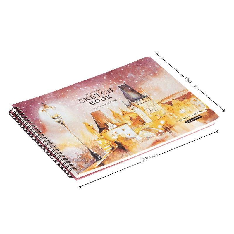 Скетчбук для акварели 20л., 260*190 Greenwich Line "Winter town", на гребне, 200г/м2
