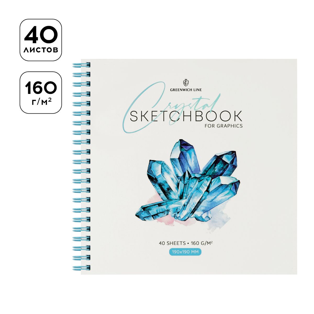 Скетчбук для графики и эскизов 40л., 190*190 Greenwich Line "Crystal. Arctic Stone", на гребне, 160г/м2