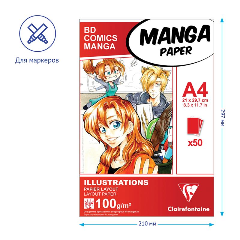 Скетчбук для маркеров 50л., А4 Clairefontaine "Manga Illustrations", на склейке, 100г/м2