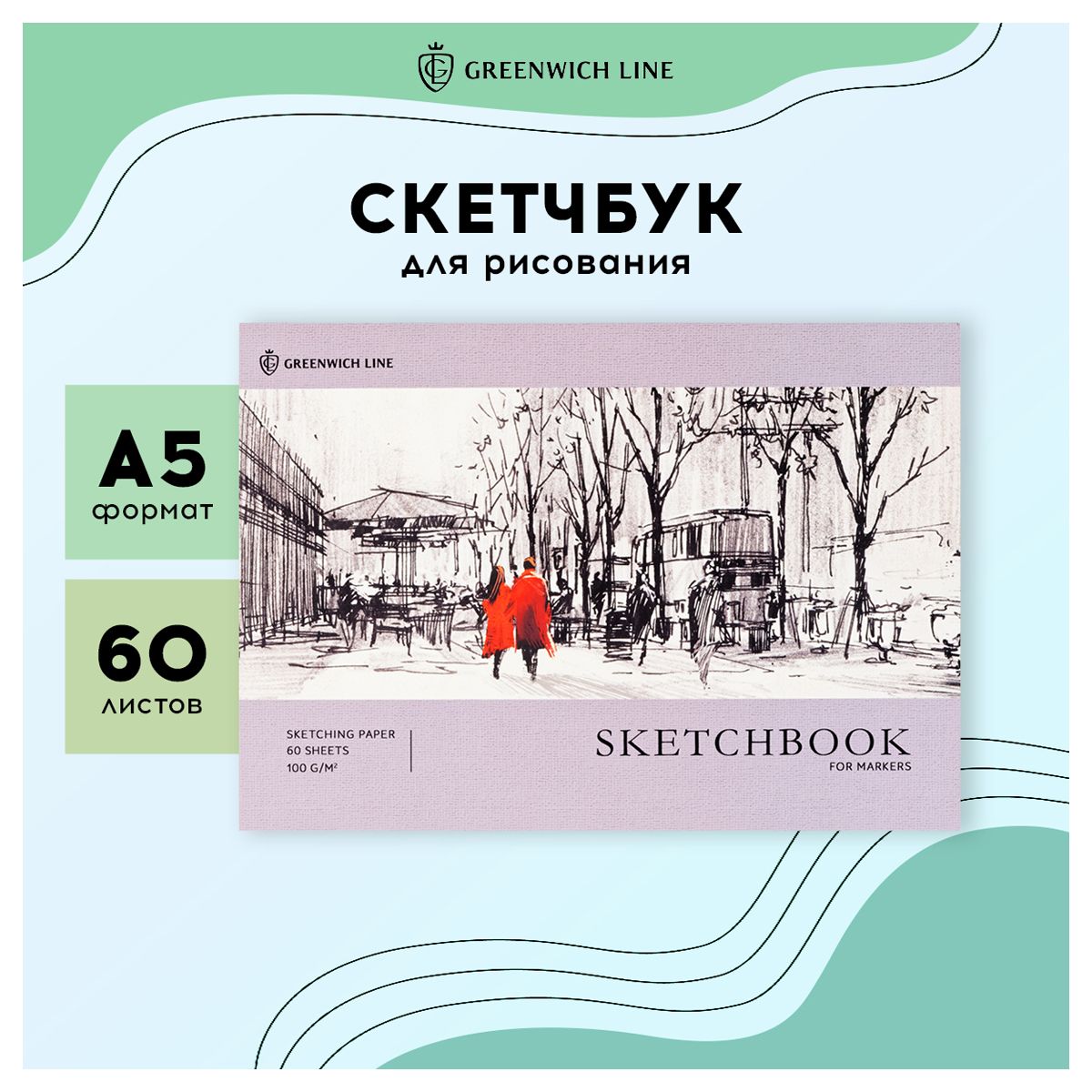 Скетчбук для маркеров 60л., А5 Greenwich Line "City walk", на склейке, 100г/м2