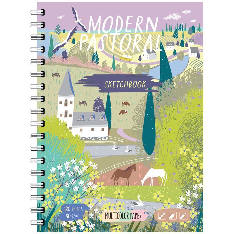 Скетчбук-тетрадь 120л., А5 BG "Pastorale moderne", на гребне, матовая ламинация, трехцветный тонированный блок, твердая обложка, 80г/м2