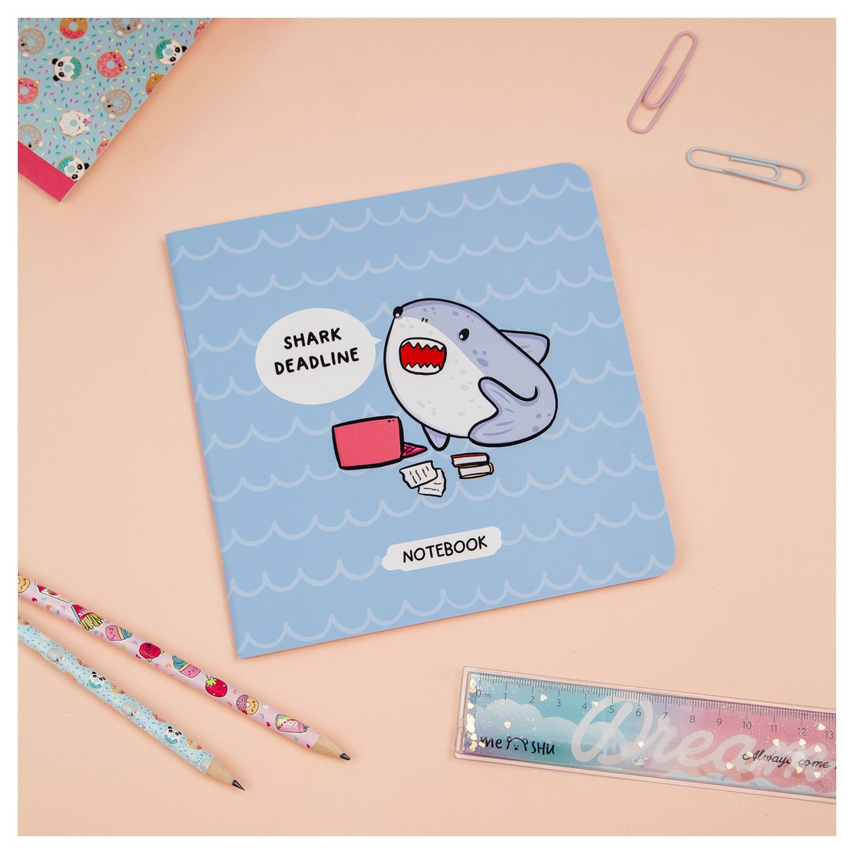 Записная книжка 170*170 мм 40л. на скрепке MESHU "Shark deadline", soft-touch ламинация, выборочный УФ-лак, блок без линовки, 80г/м2