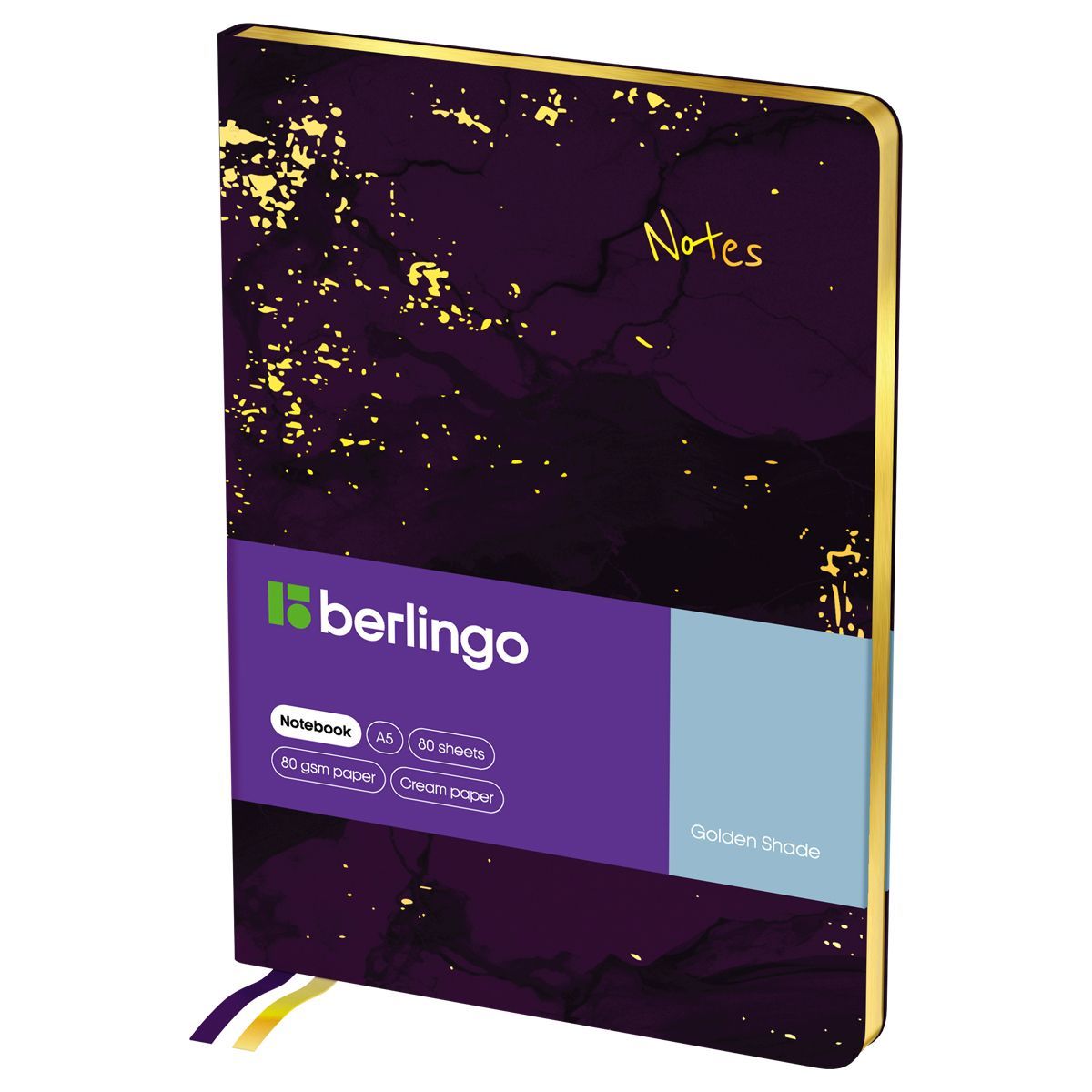 Записная книжка Berlingo "Golden Shade" подходит под персонализацию, внутри 2 удобные закладки-ляссе, выполненные в оттенках, перекликающихся с рисунком на обложке, и запечатанные форзацы.