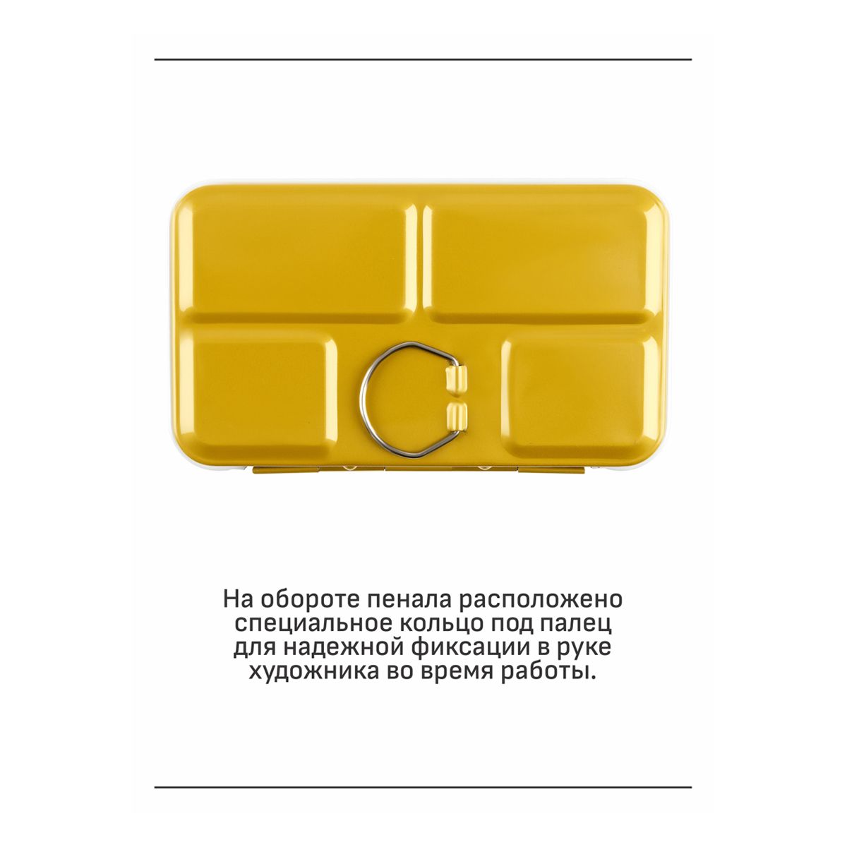Пеналы подходят для создания индивидуальной палитры цветов и хранения кювет с любимыми цветами. На обороте пенала расположено специальное кольцо под палец для надежной фиксации в руке художника во время работы. Пенал оснащен раскладной палитрой для смешивания красок. Внутри пенал белого цвета − для чистого смешения оттенков. В комплекте салфетка из микрофибры для очистки палитры или промокания кисти. Также салфеткой можно убрать излишки воды с бумаги.