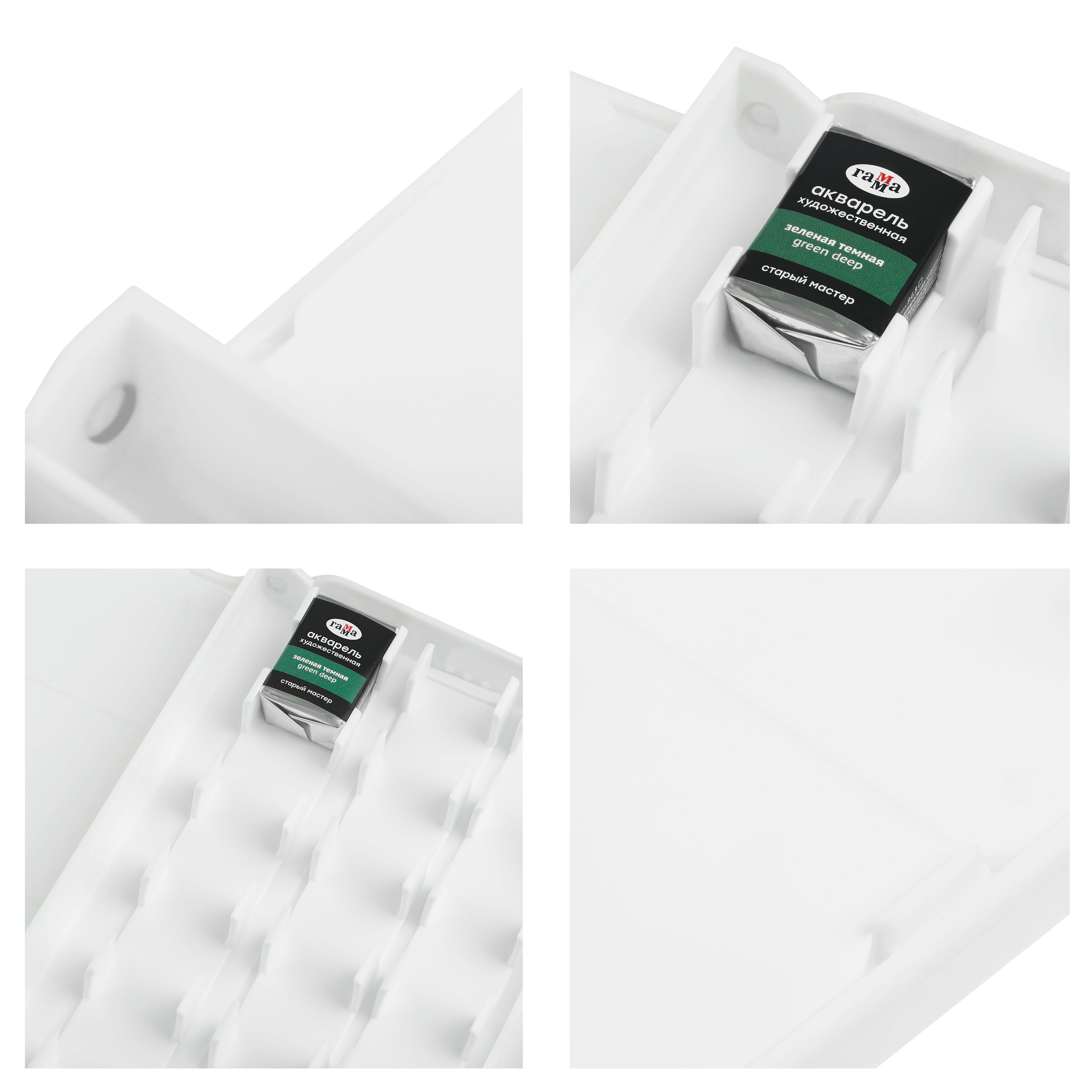 Пенал для акварели пластиковый Гамма, 12 кювет, белый, с палитрой