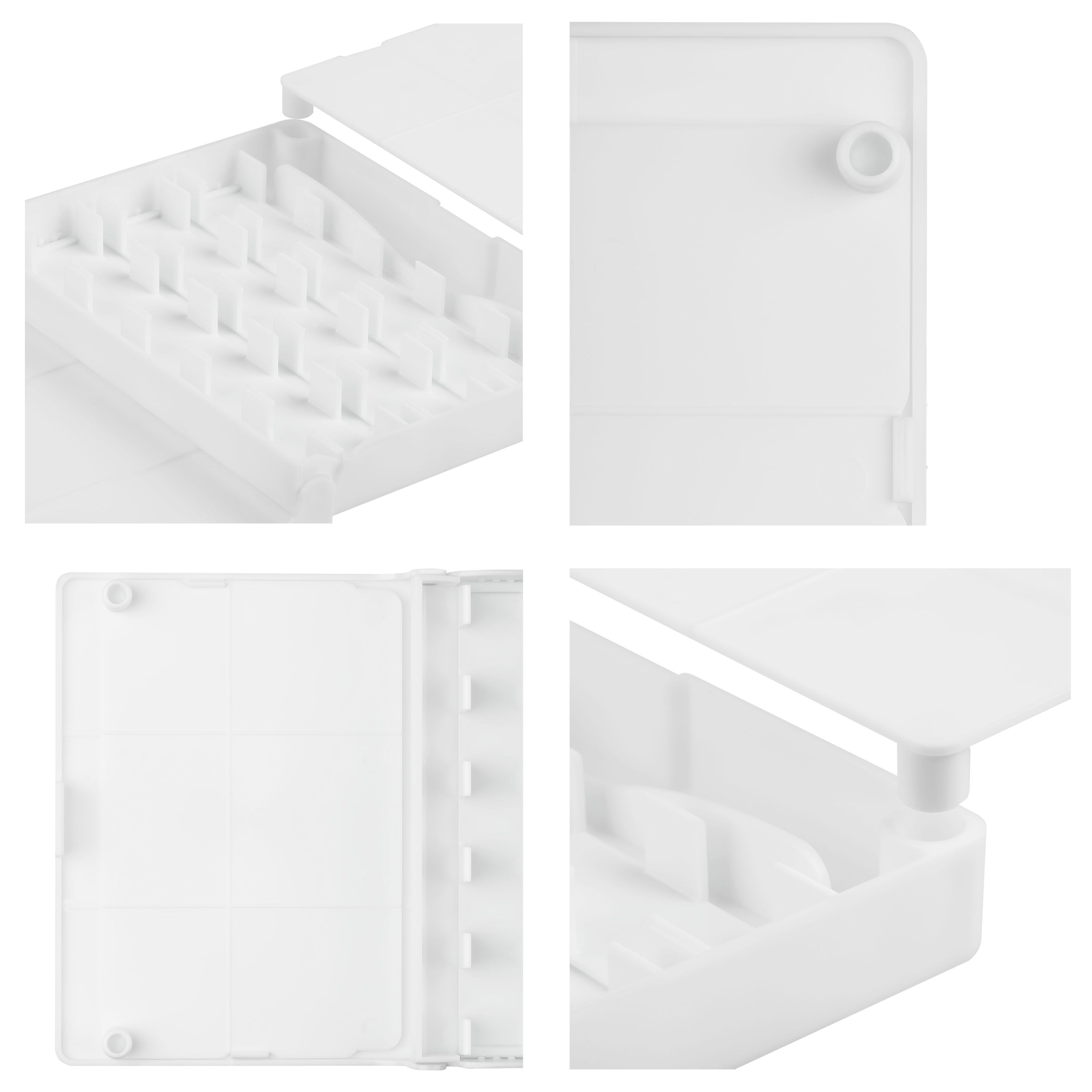 Пенал позволит создать индивидуальную палитры цветов и бережно хранить кюветы с любимыми оттенками. Он оснащён дополнительной съёмной палитрой для смешивания красок. Для чистого смешения оттенков выполнен в белом цвете.