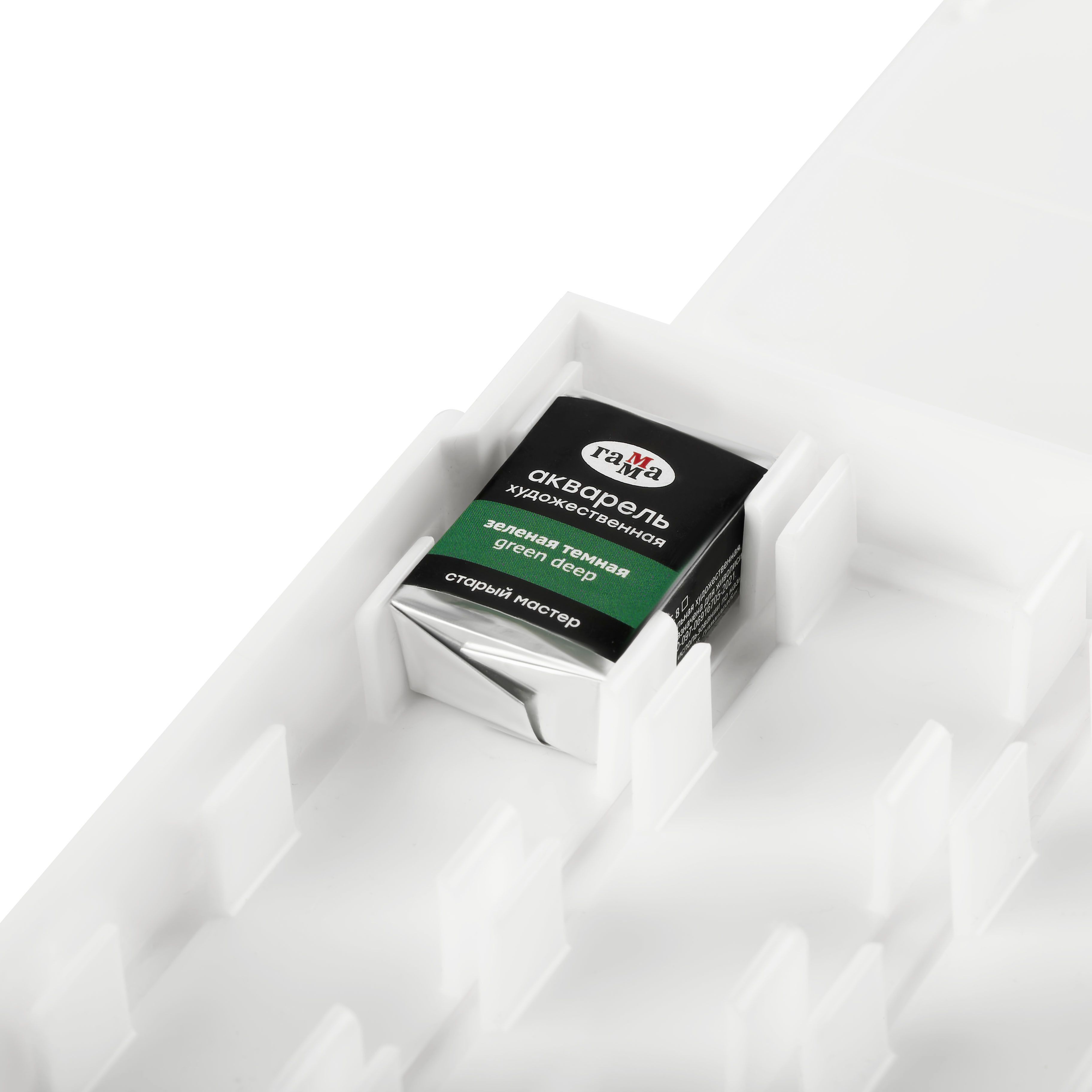 Пенал для акварели пластиковый Гамма, 36 кювет, белый, с палитрой