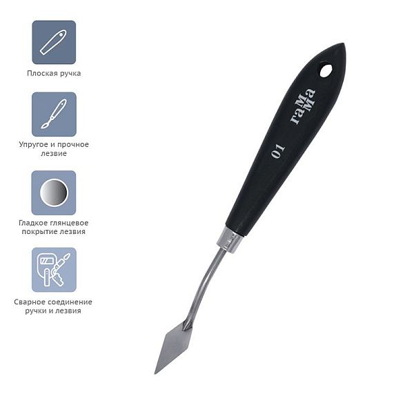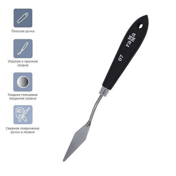 • Стеклянные мастихины — гладкая поверхность обеспечивает равномерное распределение красок и простоту очистки после использования.