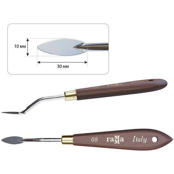 - Деревянные мастихины — классический вариант, который особенно популярен среди художников, работающих маслом.