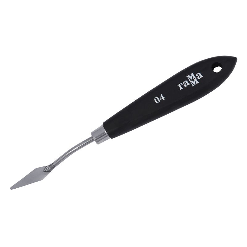 Паяный мастихин из нержавеющей стали с удобной плоской ручкой из натурального бука. Сварное соединение ручки и лезвия дает больший угол наклона мастихина к холсту, снижая вероятность случайного касания и смазывания краски.
