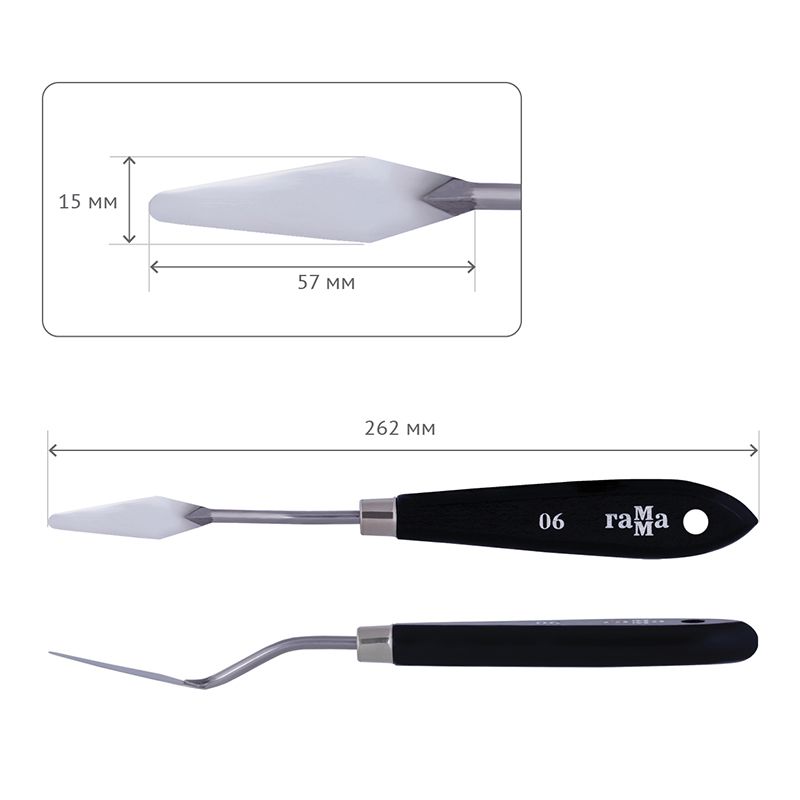размер рабочей поверхности мастихина-45мм*12мм