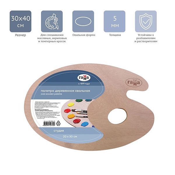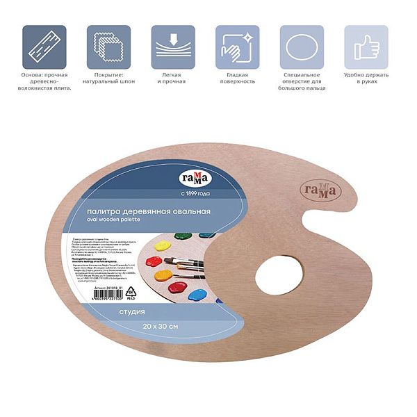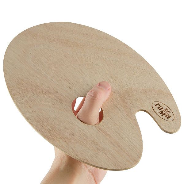 • Деревянные палитры — классический вариант, который особенно популярен среди масляных живописцев. Хорошо впитывают остатки масла и создают комфортную текстуру при работе.