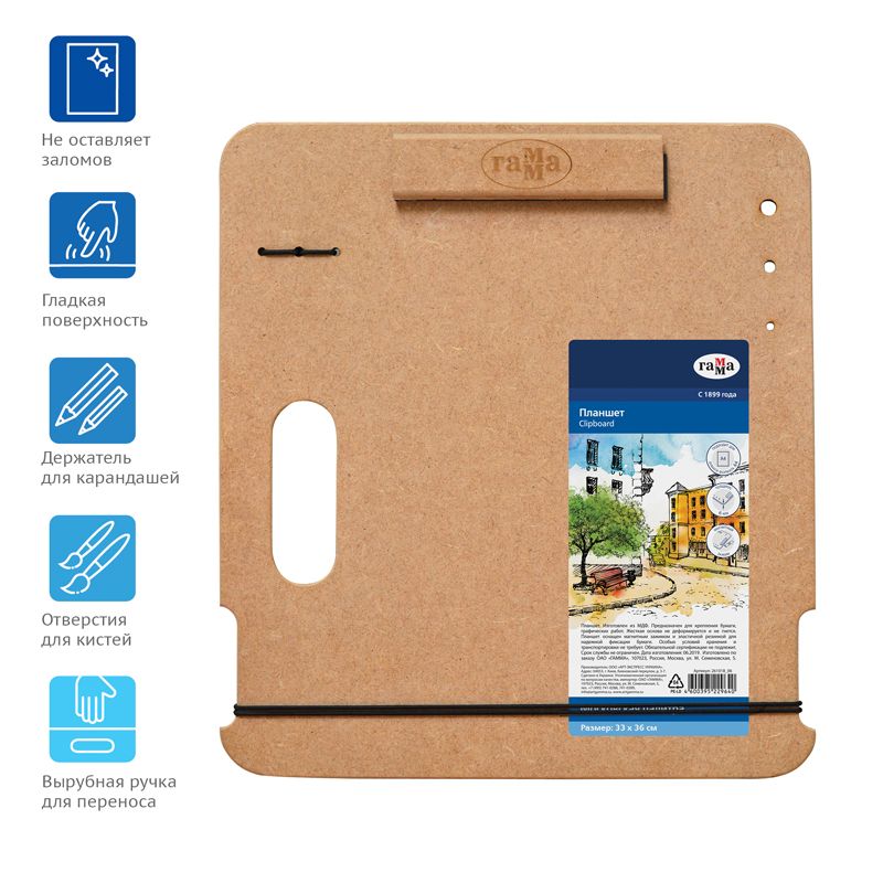Планшет-клипборд МДФ, А4 (33*36см) Гамма "Московская палитра", магнитный зажим, ручка