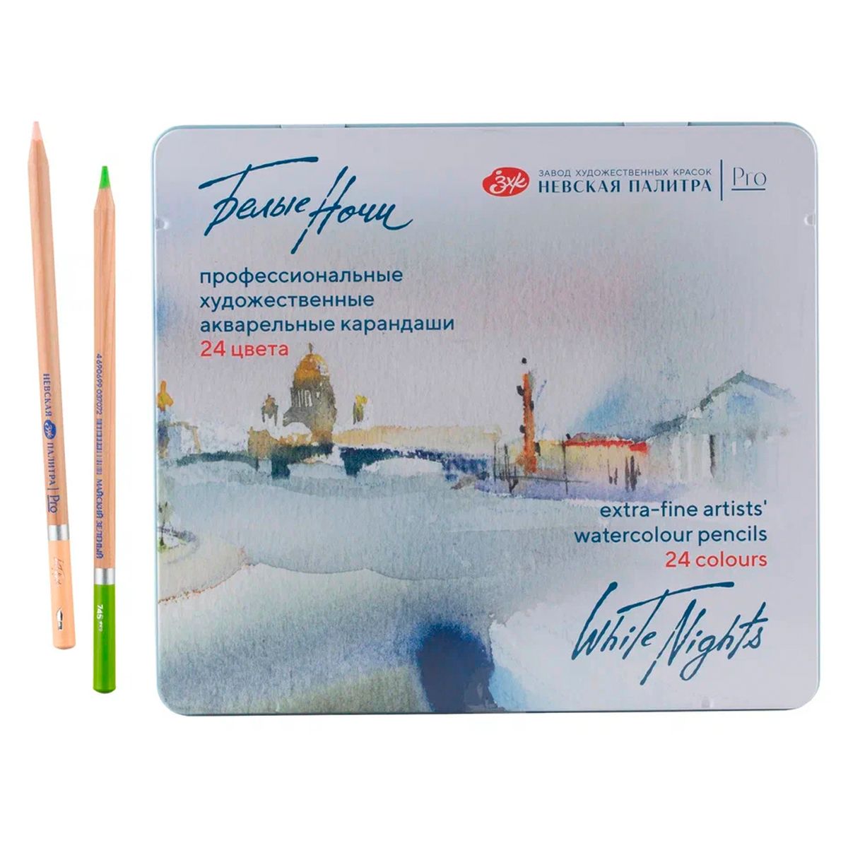 Набор профессиональных акварельных карандашей "Белые ночи", 24 цвета, в жестяном пенале