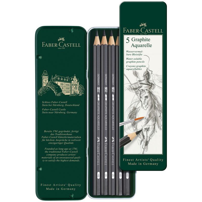 Набор карандашей ч/г акварельных Faber-Castell "Graphite Aquarelle", 5шт., HB-8B, заточ., метал. короб