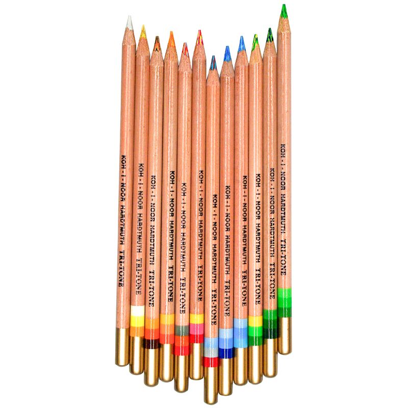 Карандаши многоцветные Koh-I-Noor "TRI-TONE 3442", 12шт., металл.коробка