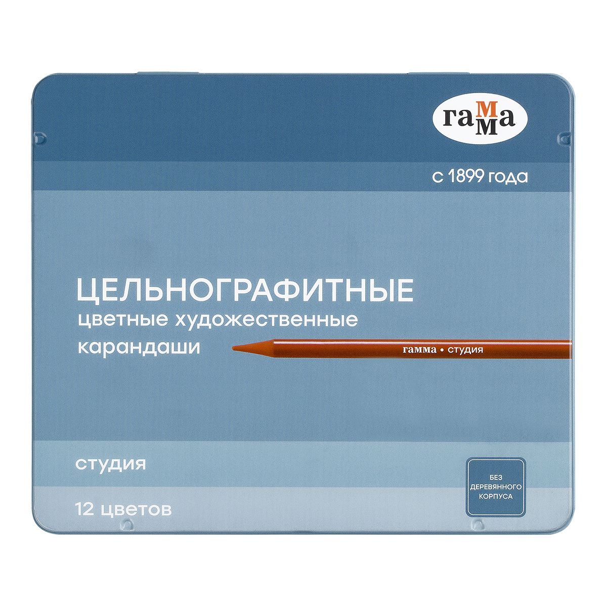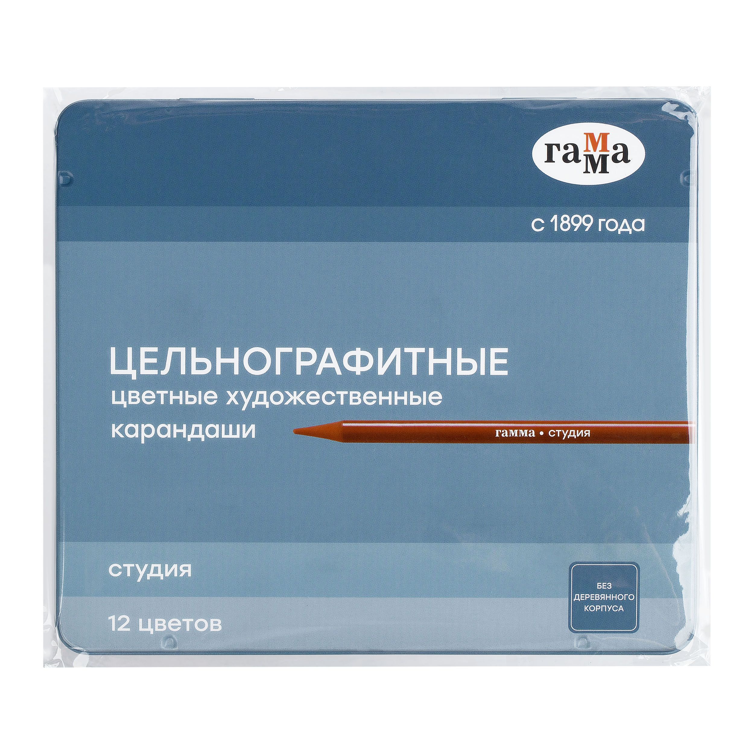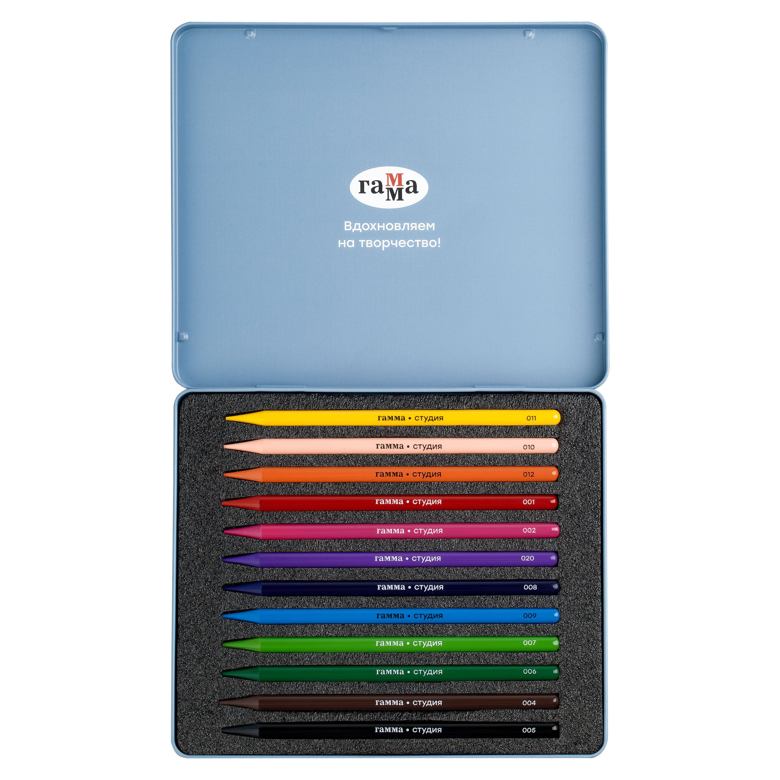 Карандаши цельнографитные цветные Гамма "Студия", 12 цв, заточенный, метал. пенал