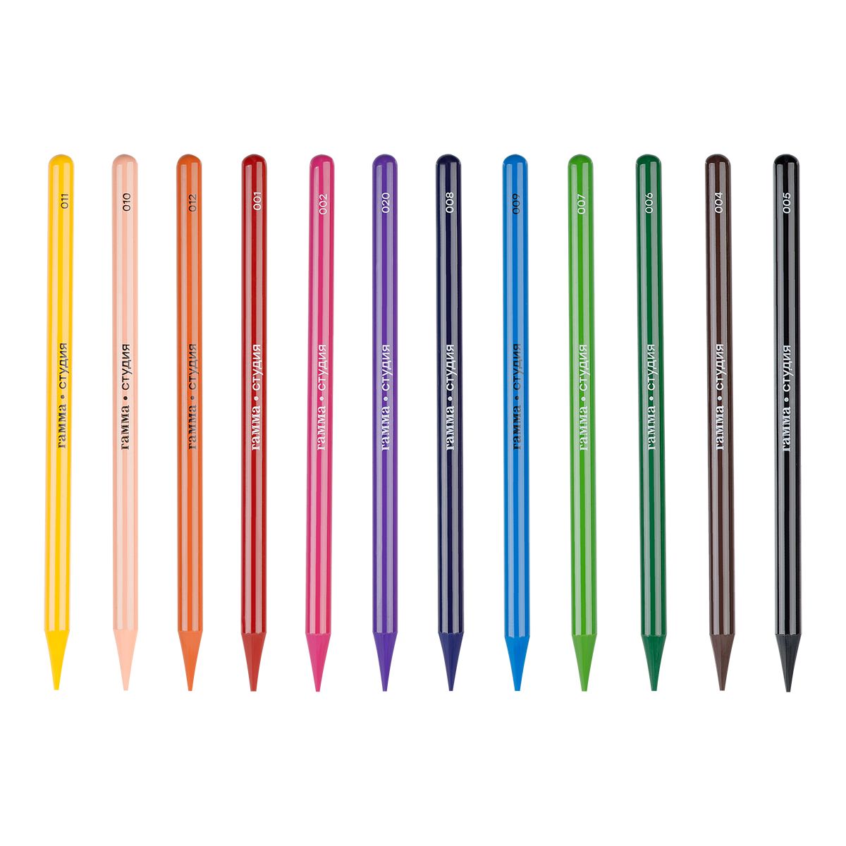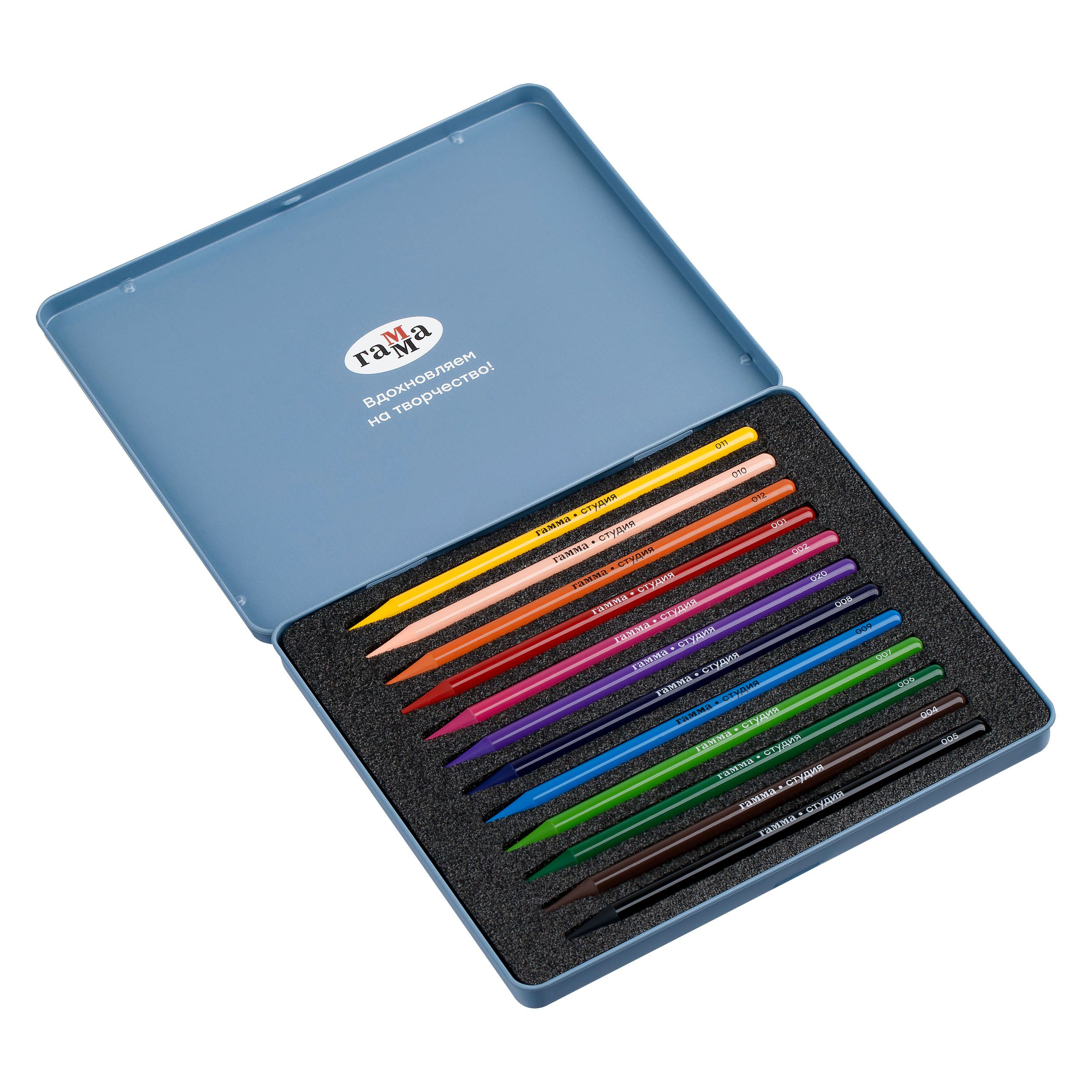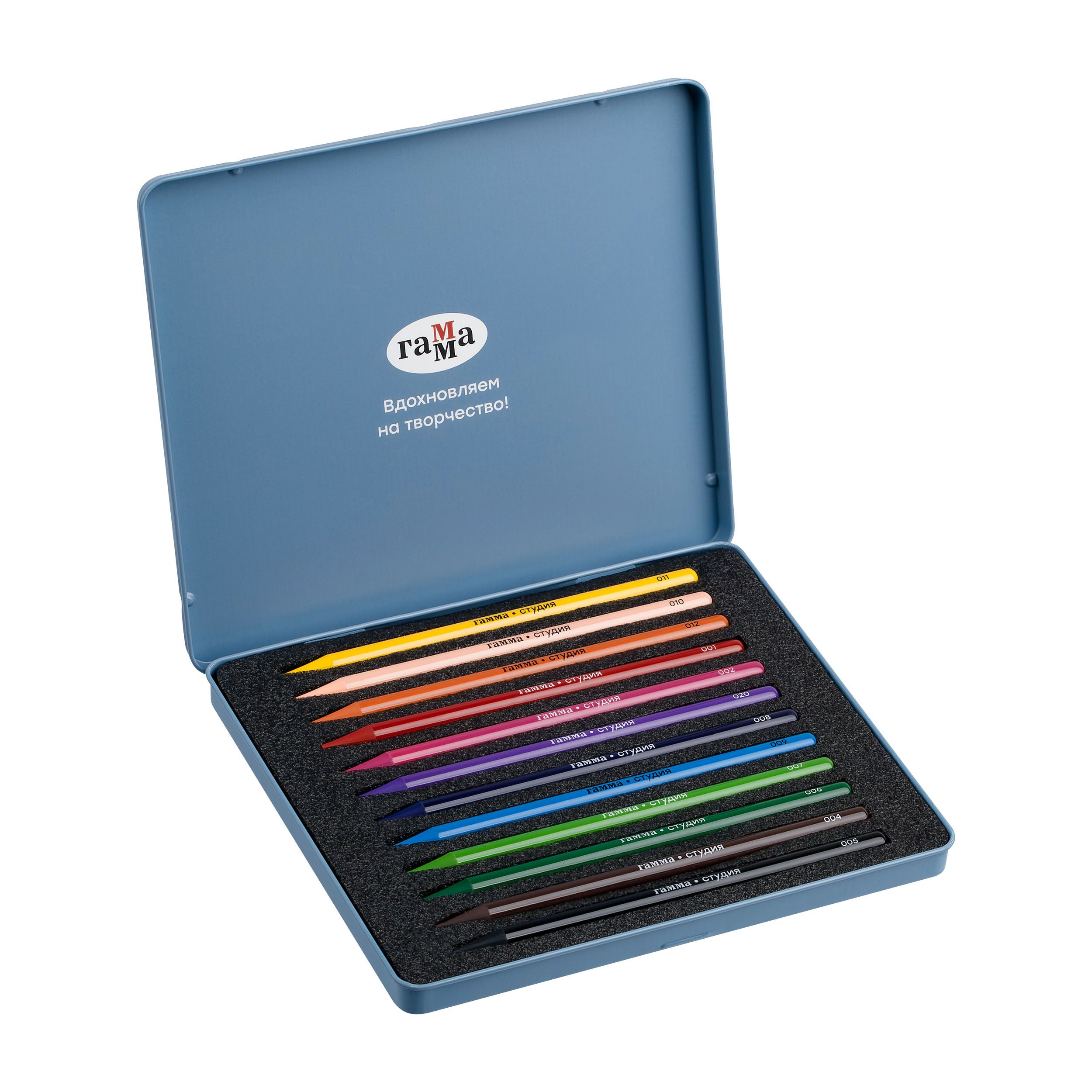Карандаши цельнографитные цветные Гамма "Студия", 12 цв, заточенный, метал. пенал