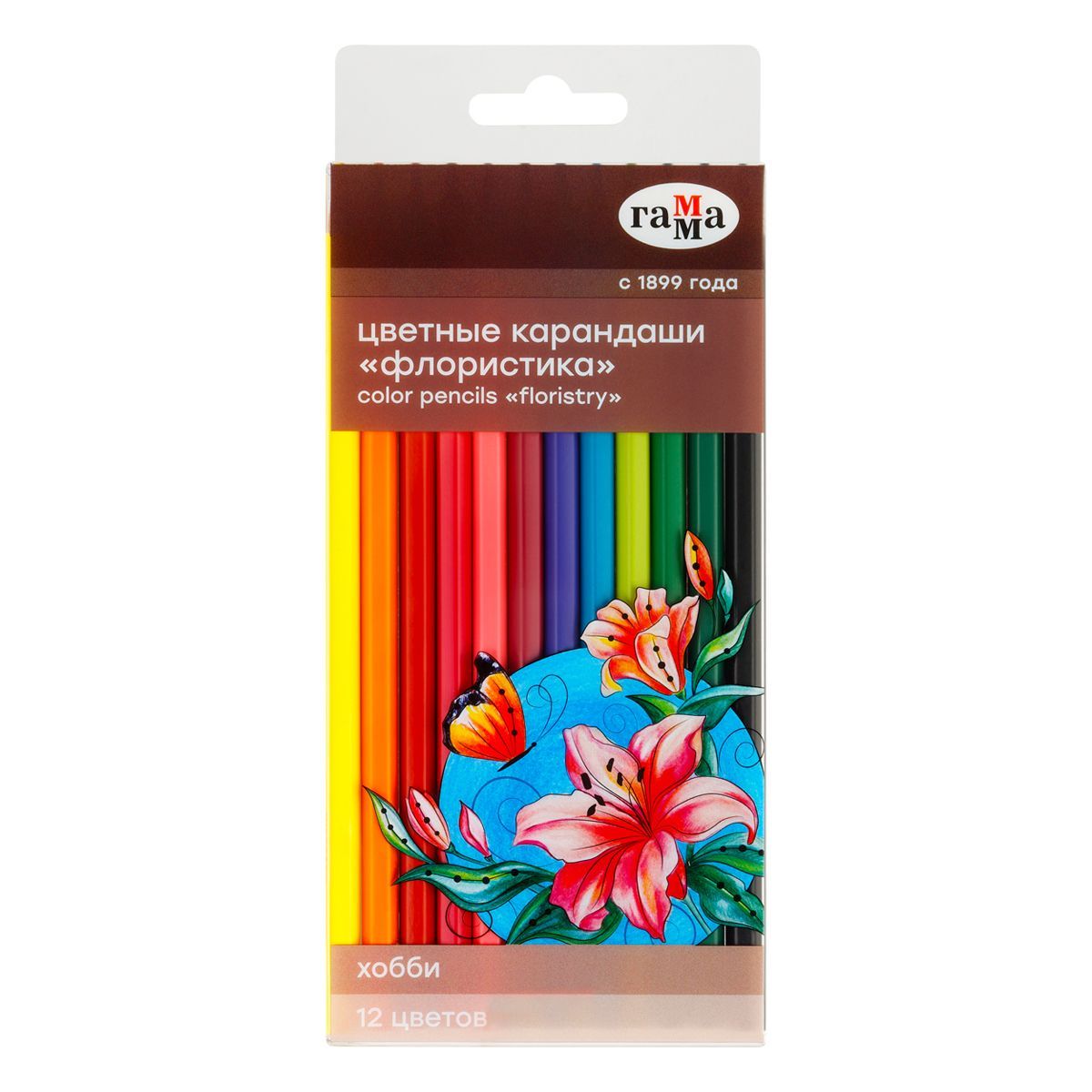 Карандаши цветные Гамма "Хобби. Флористика", 12цв., заточен., ПВХ, европодвес