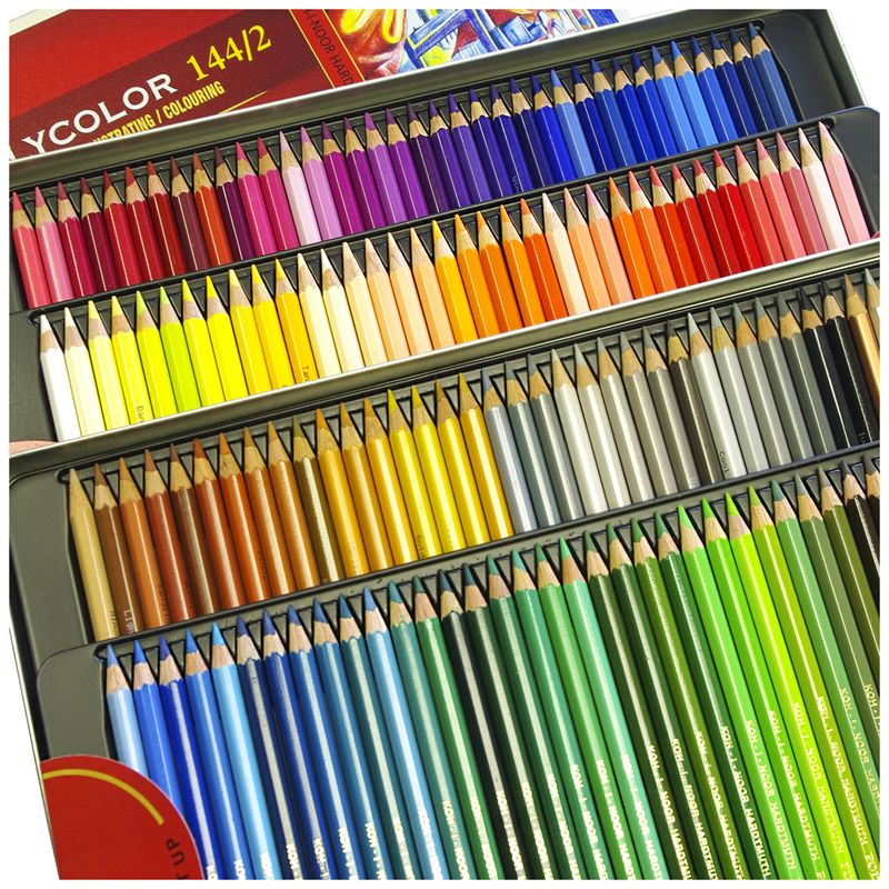 Карандаши цветные художественные Koh-I-Noor "Polycolor 3828", 144цв., заточен., 2 металл. пенала