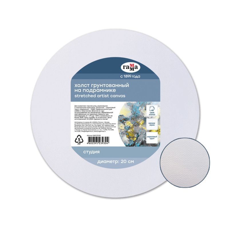 Холст на подрамнике Гамма "Студия", круглый, диаметр 20см, 100% хлопок, 280г/м2, мелкое зерно