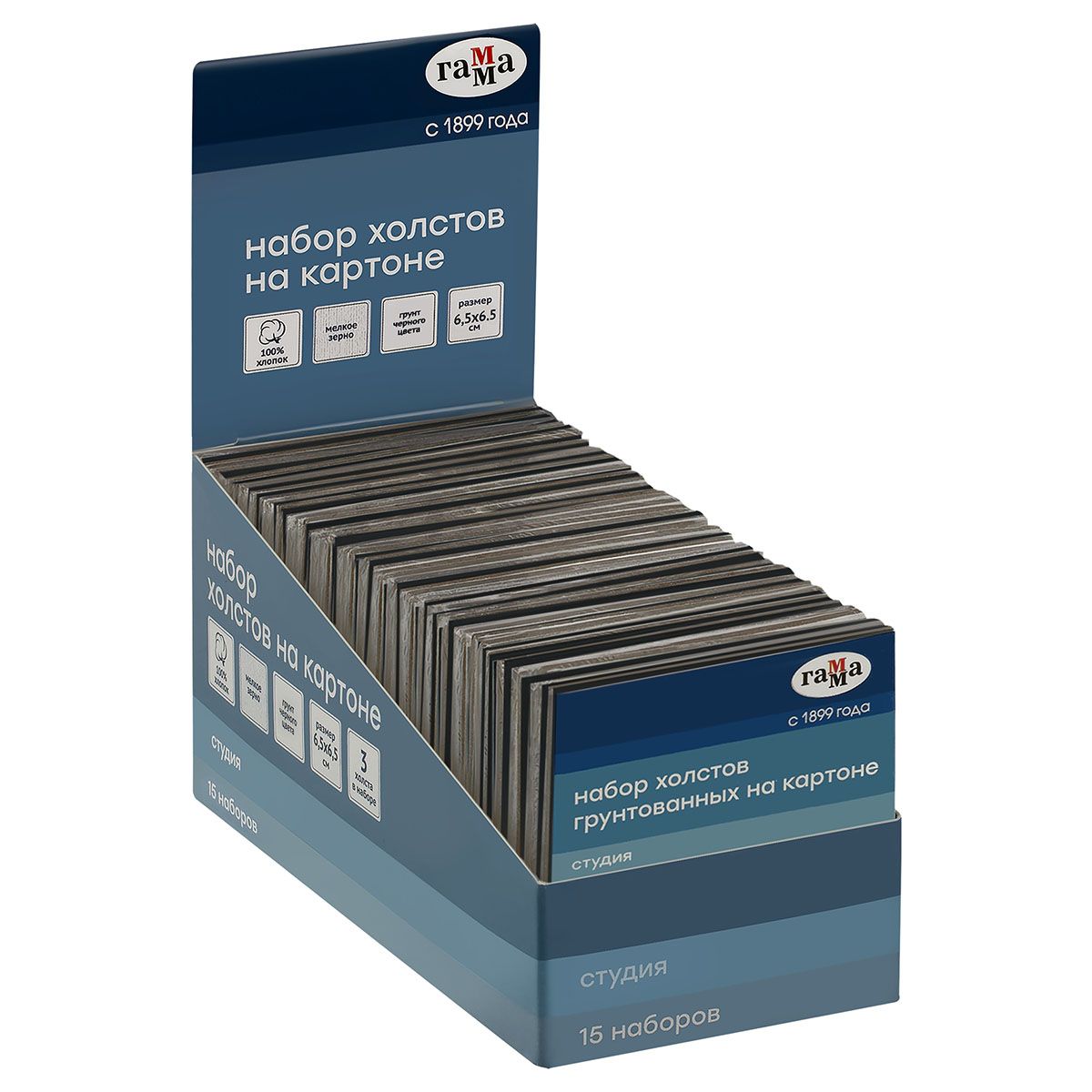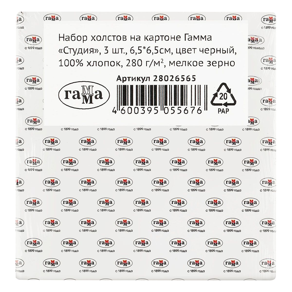 Набор холстов на картоне Гамма "Студия", 3шт., 6,5*6,5см, цвет черный, 100% хлопок, 280г/м2, мелкое