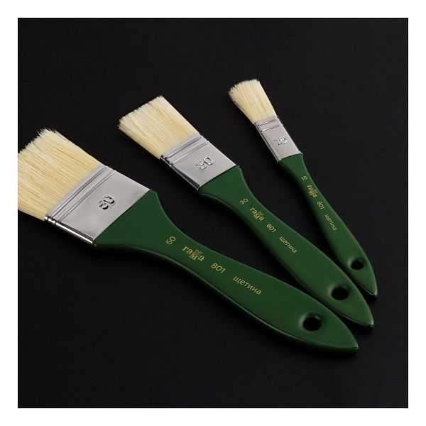 • Масло — подходят плотные щетинные кисти, способные работать с жирной консистенцией краски.
