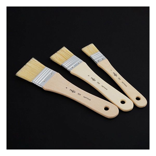 • Плоские кисти — идеальны для нанесения широких мазков, закрашивания больших поверхностей и создания текстуры.
