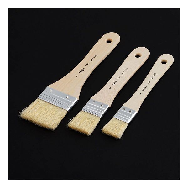 • Тип ворса — натуральный волос (например, пони или щетина) подходит для масла и гуаши, синтетический — для акрила и акварели.