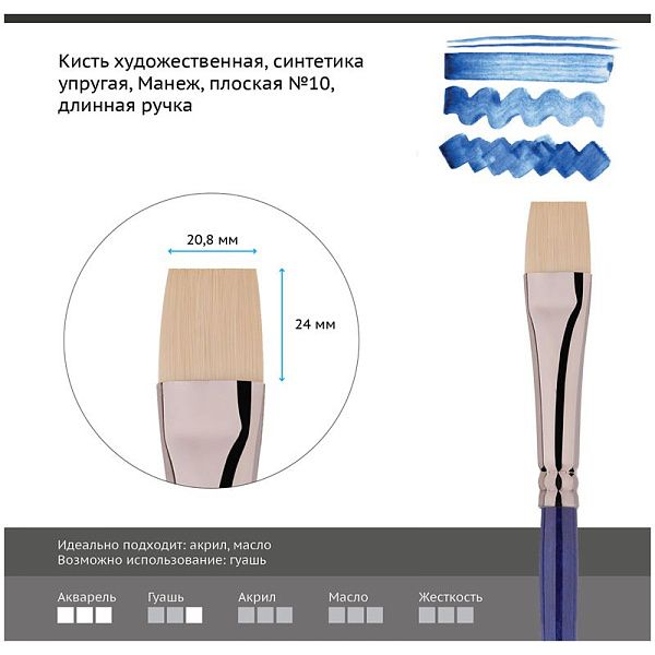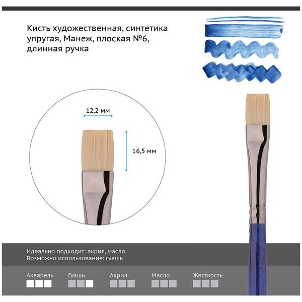 • Тип ворса — натуральный волос (например, пони или щетина) подходит для масла и гуаши, синтетический — для акрила и акварели.