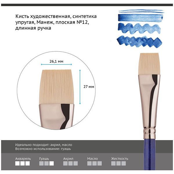 • Плоские кисти — идеальны для нанесения широких мазков, закрашивания больших поверхностей и создания текстуры.