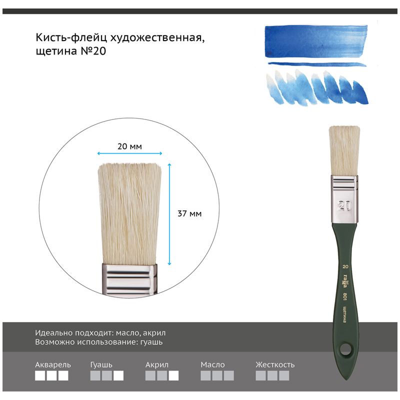 • Форма кисти: плоская;