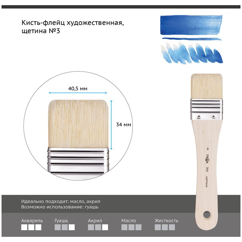 • Форма кисти: плоская;